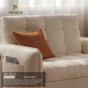 Phân tích thiết kế: SFG174 có thiết kế cực kỳ tinh gọn, tối ưu hóa diện tích mặt ngồi nhưng vẫn đảm bảo độ rộng khi mở thành giường. Cơ chế biến hình của mẫu này được đánh giá là mượt mà nhất trong phân khúc.