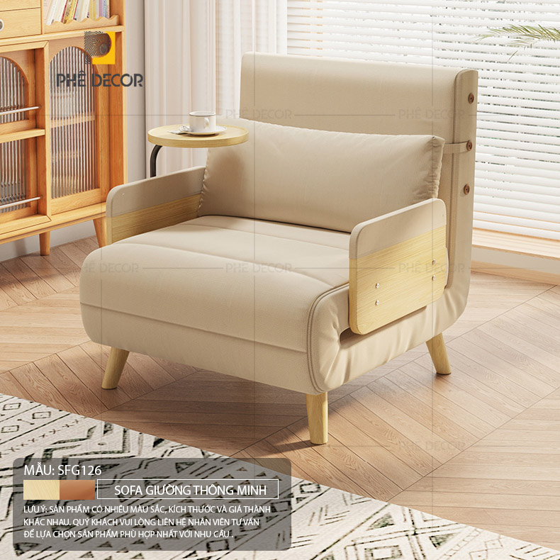 Bạn có thể dễ dàng tìm thấy một góc ngả lưng hoàn hảo để ngồi thẳng tập trung làm việc, tựa lưng thư thái để đọc một cuốn sách hay, ngả sâu hơn để xem một bộ phim yêu thích, hoặc ngả phẳng hoàn toàn để có một giấc ngủ ngắn tái tạo năng lượng. Sự linh hoạt này biến SFG126 từ một chiếc ghế đơn thành một trung tâm thư giãn cá nhân, một sự tiện nghi vượt trội so với các loại sofa giường thông thường.