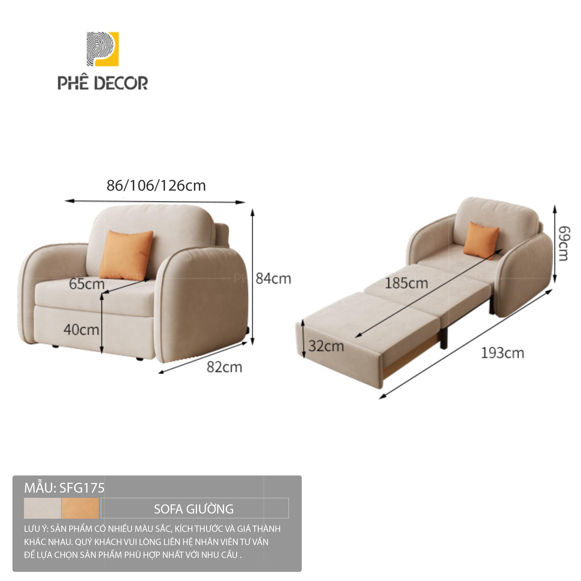 | Sofa giường đơn Luxury | Thiết kế cao cấp (như SFG175), nỉ nhung, đệm mút D45 | 11.000.000 – 16.500.000 |