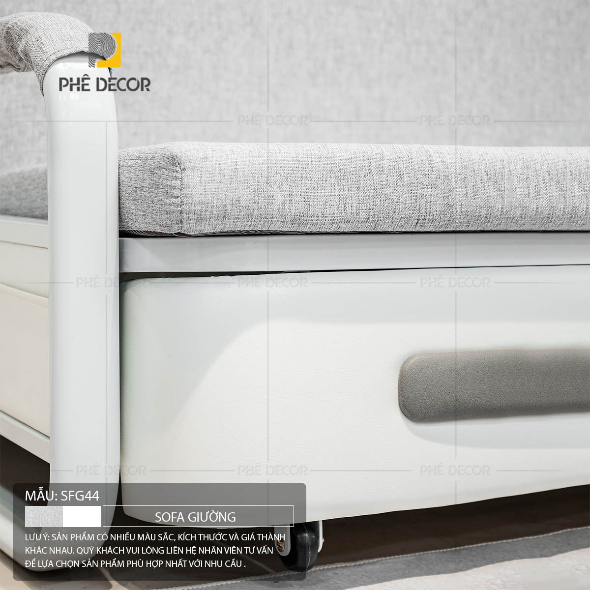 - Tích hợp hộc chứa đồ thông minh: Hiểu được nhu cầu lưu trữ trong không gian nhỏ, SFG44 được trang bị một hộc chứa đồ rộng rãi, thông minh. Đây là không gian lý tưởng để bạn cất giữ chăn, gối, giúp ngôi nhà luôn gọn gàng và ngăn nắp mà không cần thêm một chiếc tủ cồng kềnh.