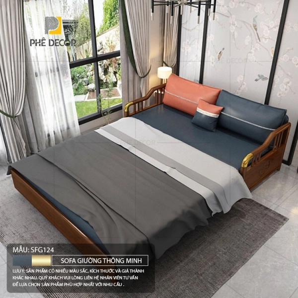 Sofa giường Hami SFG124dòng sofa giường thông minh đa năng, kết hợp giữa sofa tiếp khách, giường ngủ và hộc chứa đồ tiện lợi. Sản phẩm được chế tác từ những vật liệu cao cấp như khung gỗ Sồi tự nhiên nguyên khối, vạc thép chịu lực, đệm bọt biển đàn hồi và được bọc bởi lớp vải công nghệ chống thấm, đảm bảo độ bền vượt trội với chính sách bảo hành 5 năm cho phần khung.