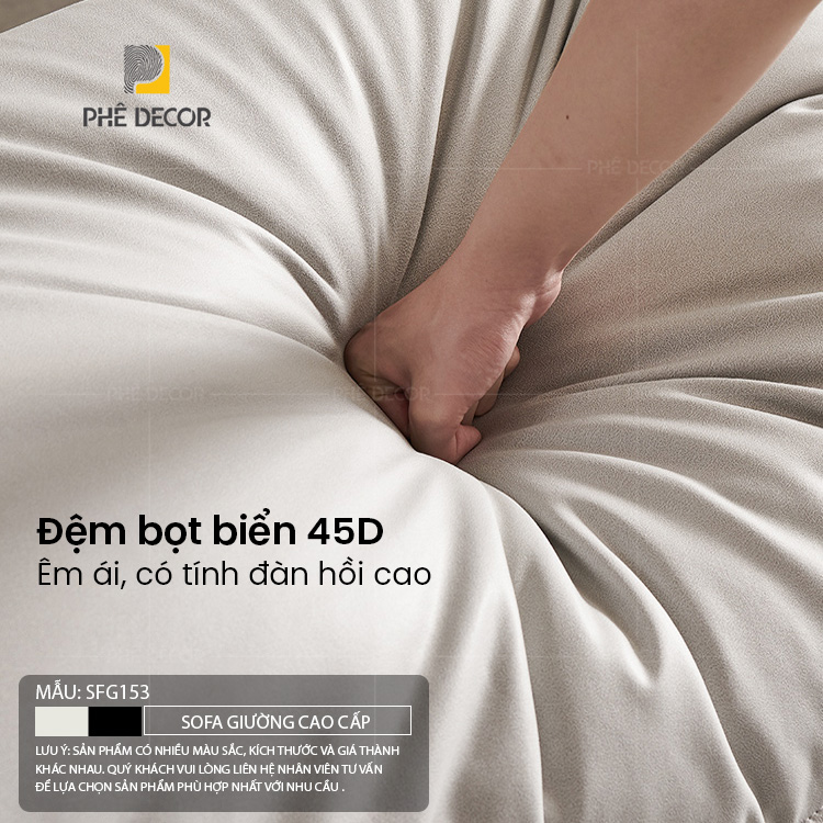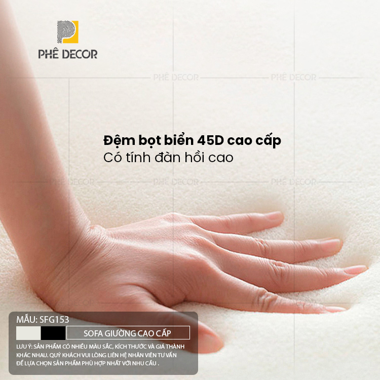 5. Sản phẩm này có phù hợp để ngủ hàng ngày không? Hoàn toàn có thể. Với kết cấu khung chắc chắn, đệm bọt biển 45D cao cấp và bề mặt da thoáng khí, SFG153 có thể mang lại một giấc ngủ chất lượng và thoải mái không thua kém gì giường ngủ truyền thống.