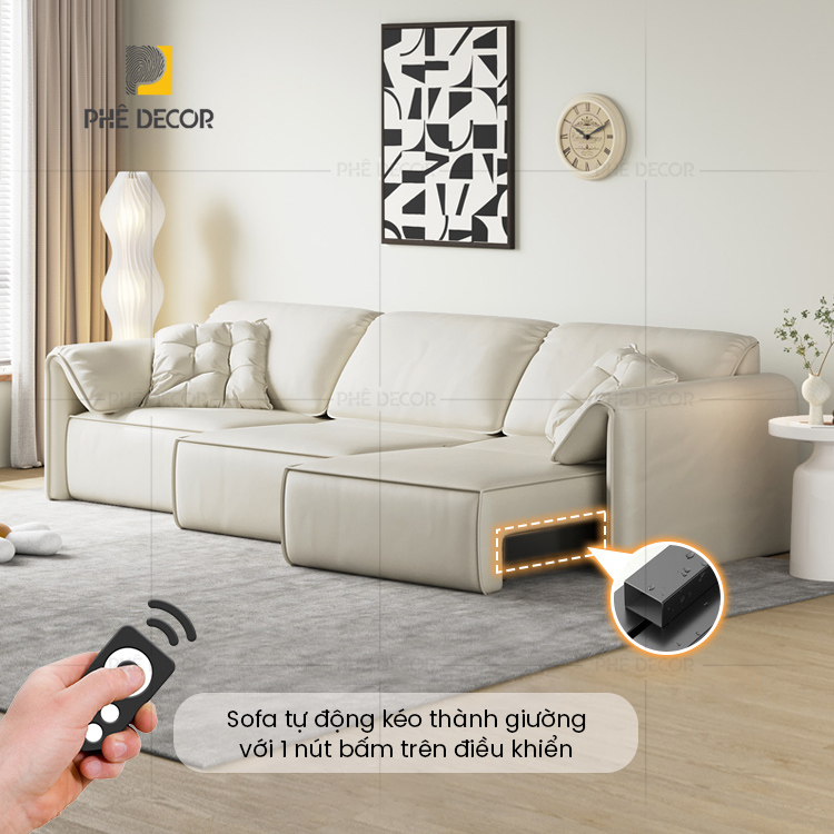 - Chất lượng chuẩn xuất khẩu, giá gốc tại xưởng: Phê luxury sở hữu các nhà máy sản xuất lớn tại Bình Dương và Đồng Nai chuyên sản xuất hàng xuất khẩu đi Mỹ và Châu Âu. Điều này cho phép chúng tôi áp dụng những tiêu chuẩn chất lượng khắt khe nhất vào sản phẩm của mình, với khung ghế nặng gấp 1.5 lần và đệm mút có mật độ PU foam cao gấp 1.3 lần thị trường. Bạn có thể tham khảo thêm một số mẫu sản phẩm sofa giường tự động giá tốt của Phê luxury như: Sofa Giường Tự Động Diamond SFG139, Sofa Giường Tự Động Alva SFG164…