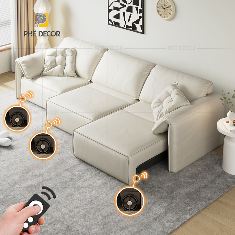 2. Hệ thống điện của sofa có an toàn không, đặc biệt khi nhà có trẻ nhỏ? Hoàn toàn an toàn. Hệ thống điện của SFG153 được thiết kế theo tiêu chuẩn an toàn của Châu Âu, với bộ chuyển đổi dòng điện phù hợp và các chi tiết được che chắn kỹ lưỡng. Cơ chế hoạt động từ từ cũng giúp hạn chế tối đa rủi ro cho trẻ nhỏ.