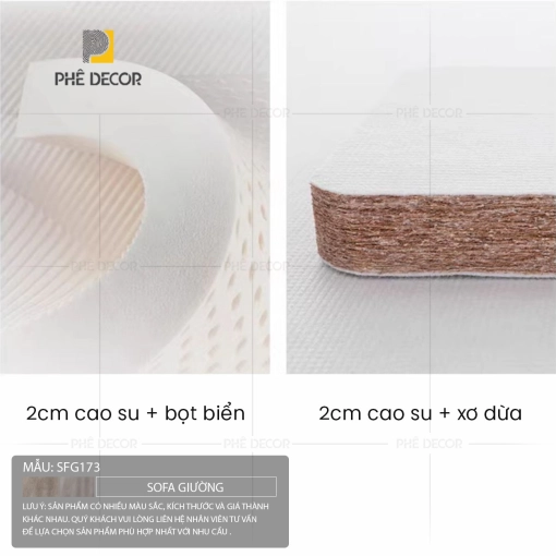 Lõi đệm của sofa giường tự động STD173 được làm từ bọt biển (high-density foam) cao cấp. Đây là loại vật liệu có khả năng nâng đỡ và phân bổ trọng lượng cơ thể một cách đồng đều, giúp giảm áp lực lên cột sống và các khớp.