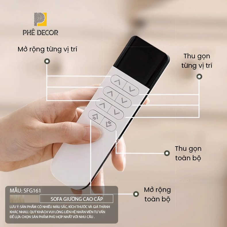 Sofa giường tự động SFG161 là mẫu sofa giường thông minh đa năng, được định danh bởi lớp vỏ bọc chống mèo cào, lớp lót lông vũ siêu êm và cơ chế điều khiển 4 chức năng, thiết kế để mang lại sự thoải mái tối đa cho cuộc sống gia đình hiện đại.