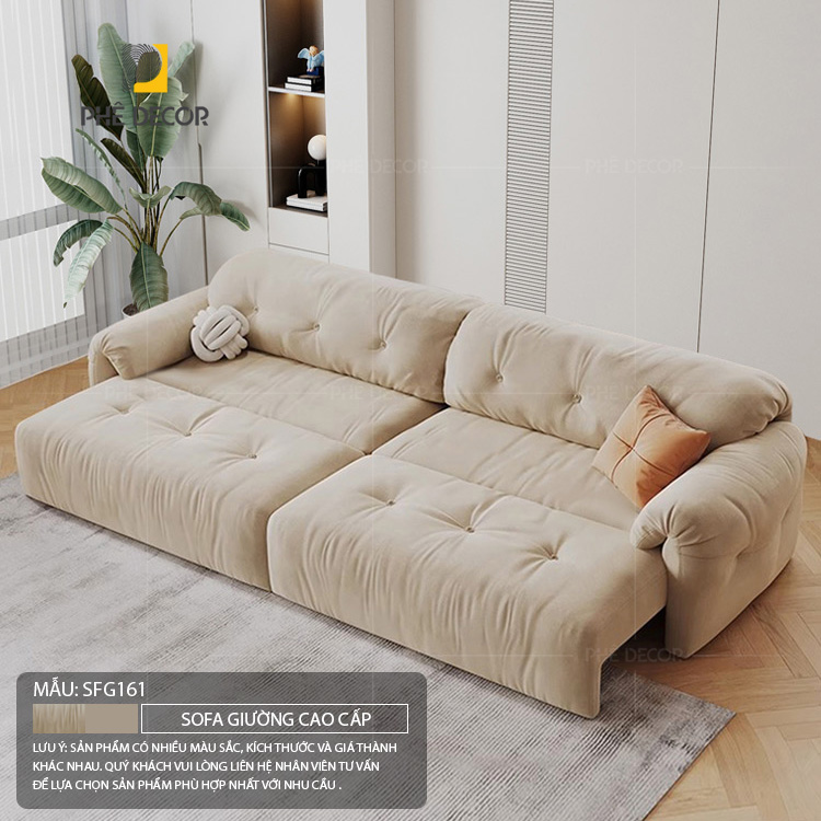 3. Sofa này có phù hợp để làm giường ngủ hàng ngày không? Hoàn toàn có thể. Với kết cấu khung chắc chắn, đệm bọt biển đàn hồi cao và đặc biệt là lớp lông vũ êm ái, SFG161 có thể mang lại một giấc ngủ chất lượng và thoải mái không thua kém gì giường ngủ truyền thống.